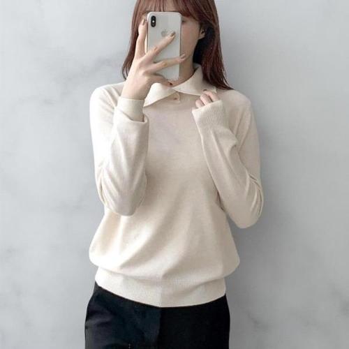 [다잇템][다잇템] 여성 민무늬 롱슬리브 클래식 단추 FW 카라넥 티셔츠 니트_23081179_588872