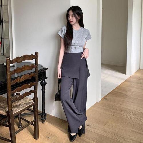 [신상오픈런]여성 언발란스 랩 스타일 레이어드 와이드 롱 팬츠 스커트