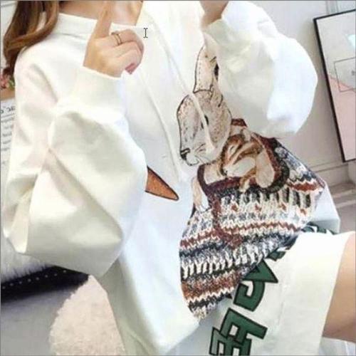 [셀러허브_여성트랜드패션]여자 기장 맨투맨 프린팅 힙덮는 루즈핏 티셔츠 롱 토끼 후드