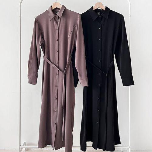 [옷자락] 여성 가을 하객 출근용 벨트 셔츠 롱 원피스