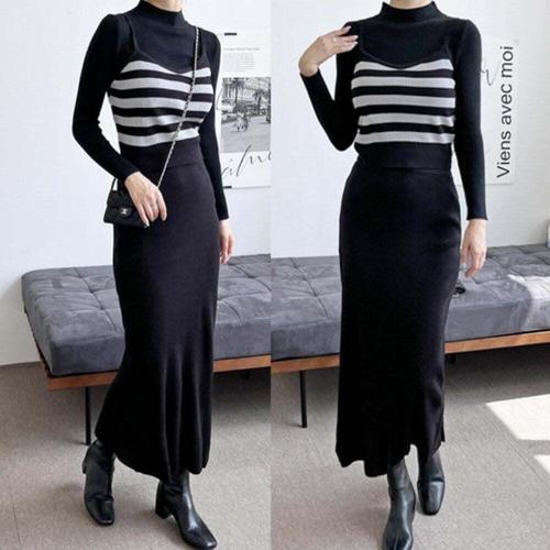 [셀럽하우스]여자니트 SRSF7701 롱스커트 니트세트 셋트상품 위아래 코디
