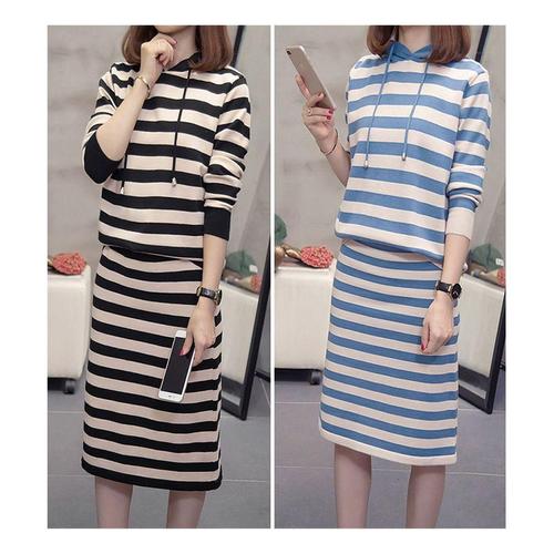 [셀럽하우스]밴딩 UZMI3261 롱 여자 단가라 세트 스커트 스트라이프 후드