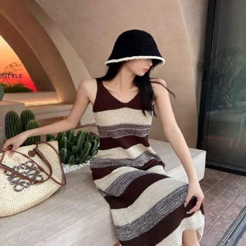 [엄지척]여성 여름 간절기 이너 민소매 배색 니트 롱원피스_19952034_667501