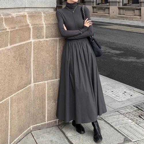 LUMORA 겨울 여자 빅사이즈 루즈핏 베이직 하이넥 롱 니트 이너 원피스 XZ5066