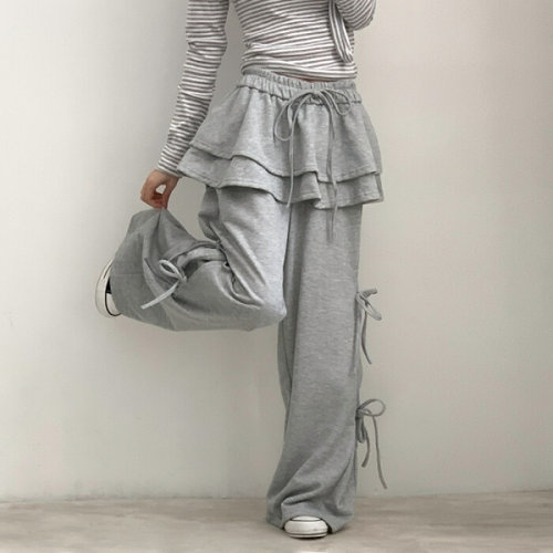 입꼬 / 리본 캉캉 치마바지 롱와이드 밴딩팬츠2color