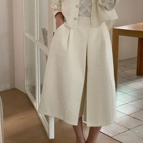[다잇템][다잇템] 여자 큐롯팬츠 트위드 핀턱 들러리룩 넓은 롱스커트_20233216_588872