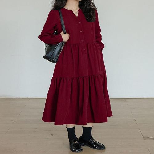 [써스데이아일랜드]기모패턴 롱 티어드 원피스(T238MOP237W)
