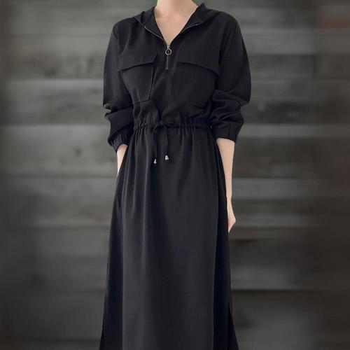여성 하이웨스트 스타일 긴팔 목티 원피스 URK-245폴라 A라인 심플 블랙롱 회색 고급 데일리 긴원피스