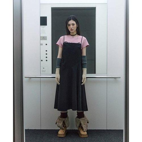 브이넥 리본 스트랩 롱기장 레이어드 원피스 3컬러