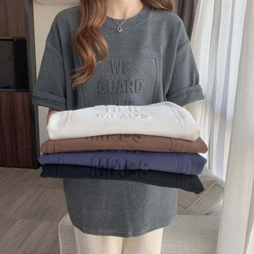 [엄지척]여성 오버핏 여름 반팔 티셔츠 영문 입체 롱 박스티_19615013_667501
