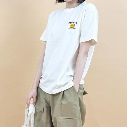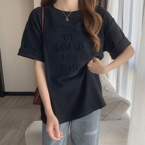 [옷자락]여자 반팔 레터링 라운드넥 롱티 패치 티셔츠