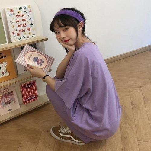 [셀러허브_여성트랜드패션]여성 오버핏 롱티 면 라운드 여름 반팔티