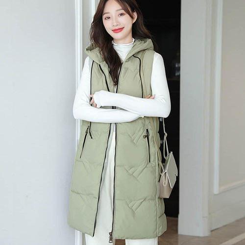 여성용 겨울용 롱패딩 보온 조끼 캐주얼 스타일 WFLME0O
