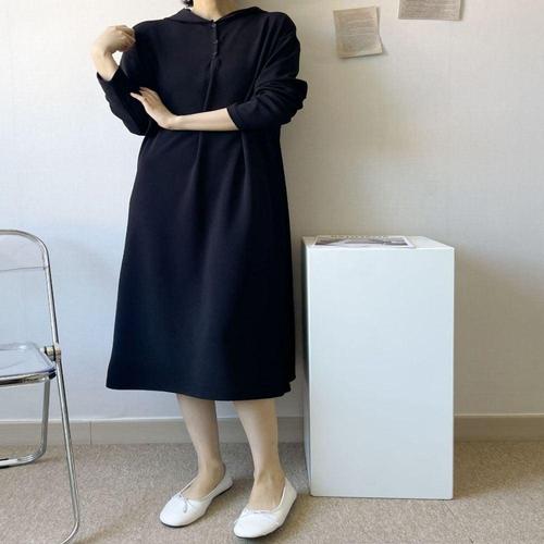 [엄지척]긴팔 루즈핏 앞단추 후드원피스 후드 롱원피스 빅사이_20338687_667501