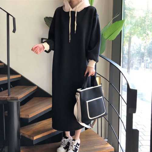 슈팅스타 / 배색 기모 맨투맨 롱 후드 원피스