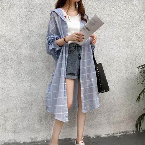 [셀럽하우스]롱셔츠 KCMG1915 후드 긴팔 바람막이 긴남방 여자 캐주얼 코디