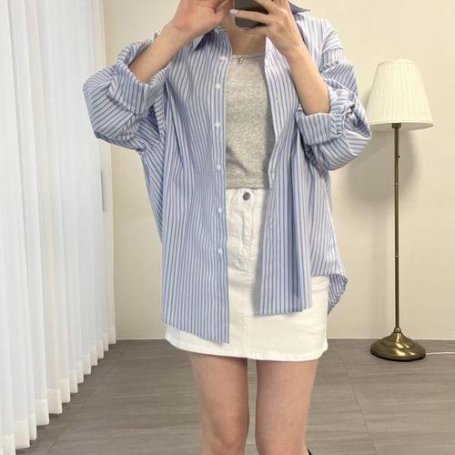 [다잇템]여자 롱슬리브 박시 단가라 박시핏 셔츠