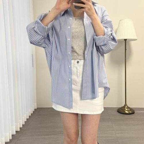 로로스키니 여성스트라이프 롱셔츠 긴팔 오버핏 셔츠
