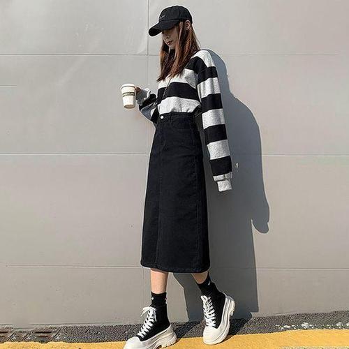 BLACK K7 가을 데일리 빈티지 캐주얼 롱 청치마 롱 청스커트