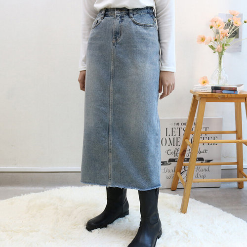 라라온 뒷밴딩 롱기장 슬릿 데님 스커트 TSP2682