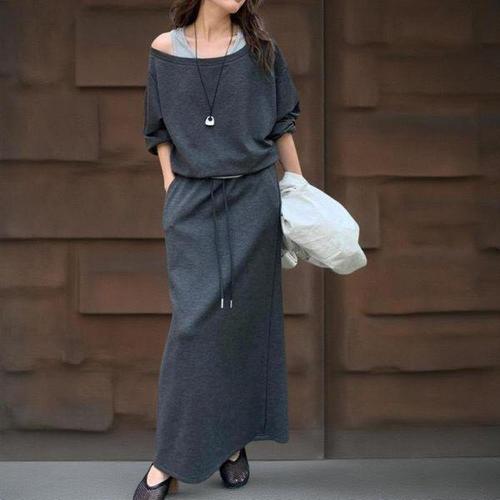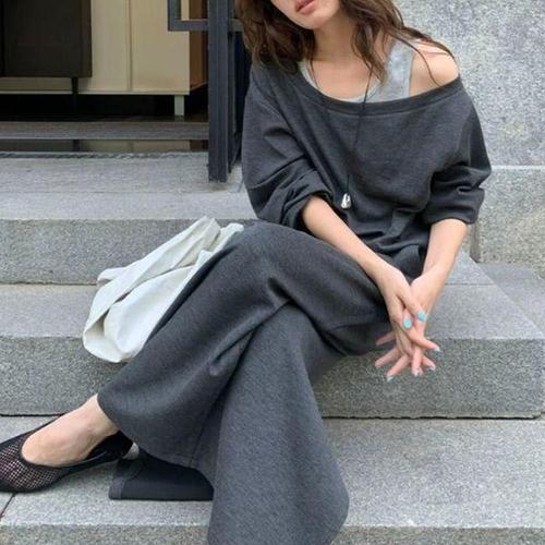[신상오픈런]여성 배색 나시와 롱 스커트 레이어드 세트