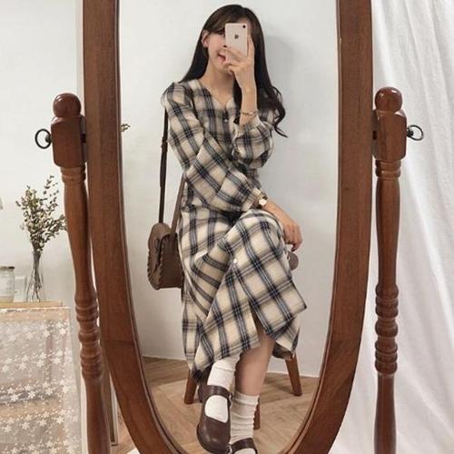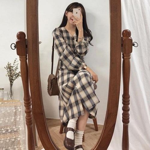 [엄지척]롱원피스 원피스 체크셔츠 셔츠원피스 여성 2컬러 미_19911110_667501
