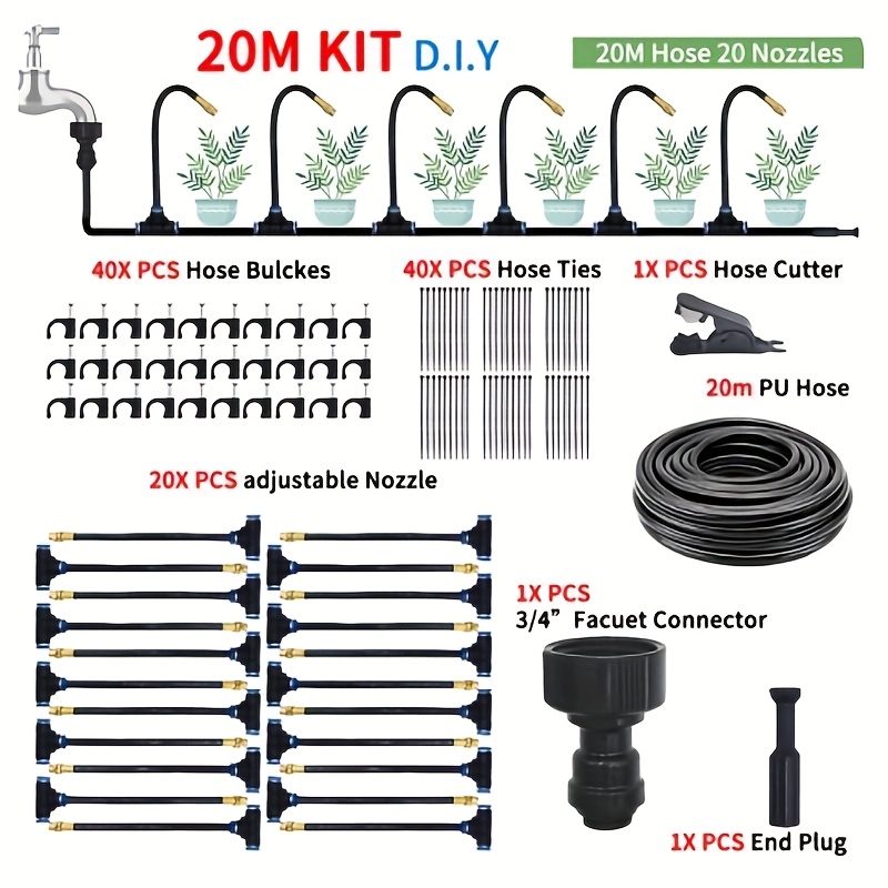 TEMU 20m 범용 드립 관수 키트, 조절 가능한 7.87인치 황동 분무 노즐 - 발코니 온실 원예용 자동 급수 시스템, 전기 불필요