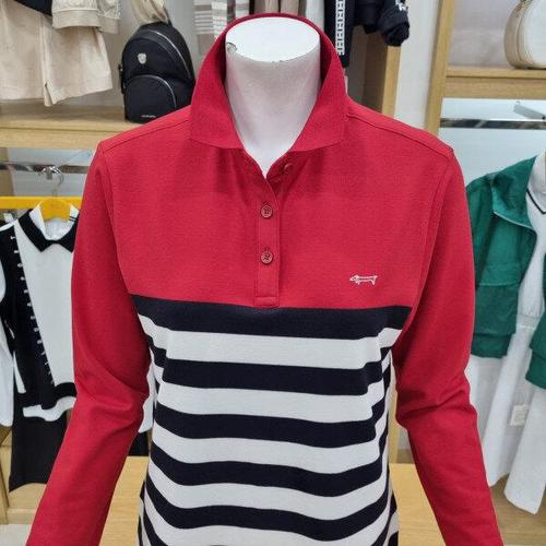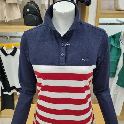 루이까스텔 여성 원포인트 블록 스트라이프 배색 카라 티셔츠