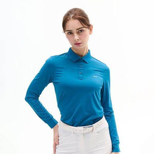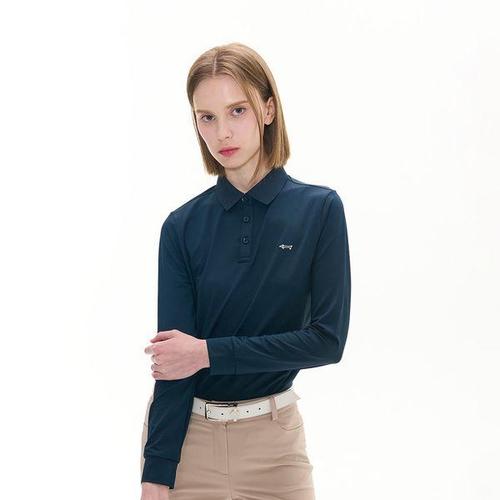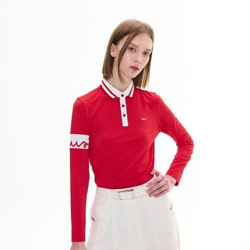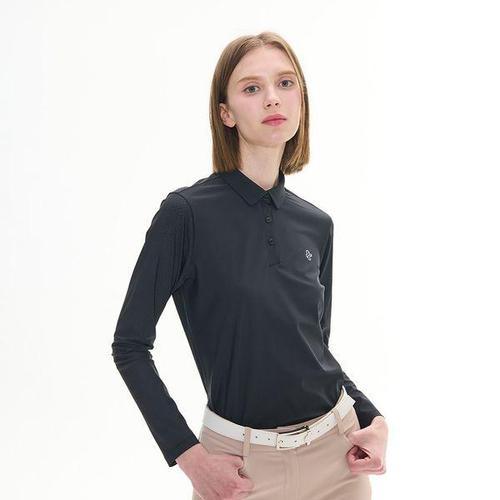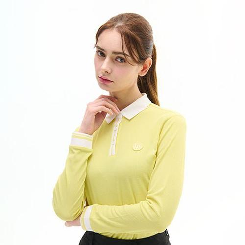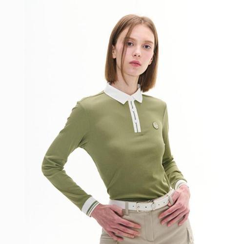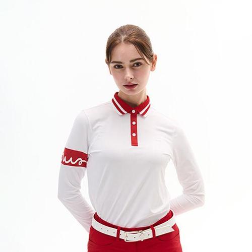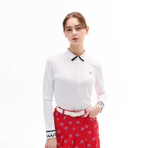 [루이까스텔]여성 카라 로고 배색 솔리드 긴팔 티셔츠