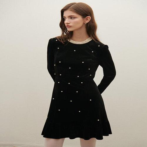 [샤틴]벨벳 프릴카라 원피스/S254M653