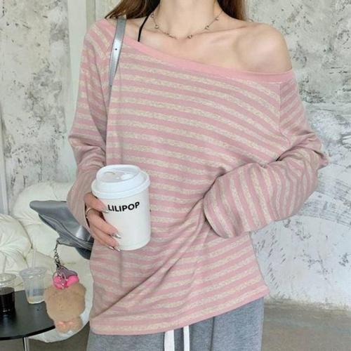 애슬레저룩 오프숄더 루즈핏긴팔 오프숄더티 티 WFLQ9WZ
