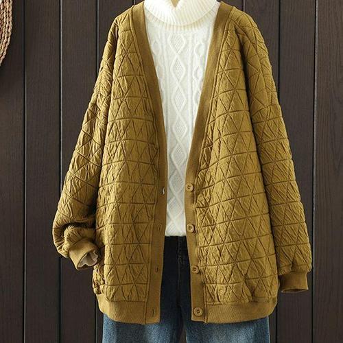 [에이시크]루즈핏 퀼팅 보온 브이넥 롱 가디건 C24DCD850