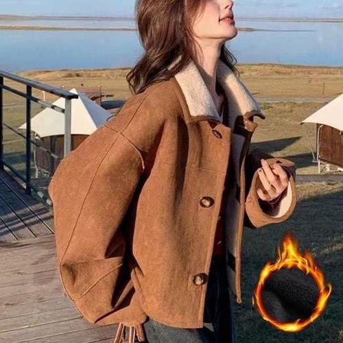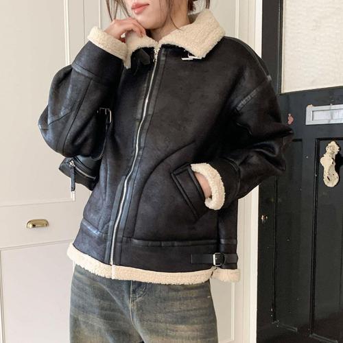 ANYOU 스웨이드 재킷 후리스 여성 겨울 루즈핏 무스탕 양털 겨울 신상 빅터틀넥 램스울코트 여오버핏BF풍 무스탕 일체형 라이더 자켓 붐