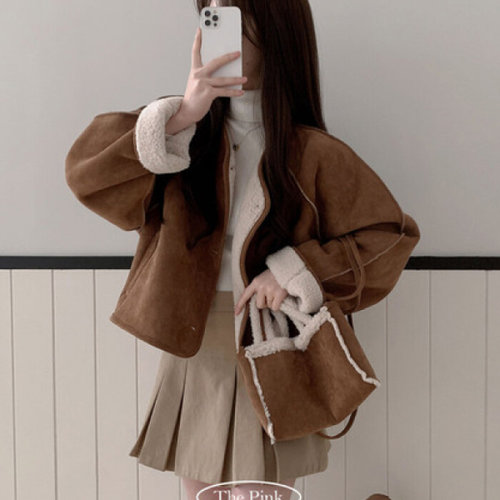 더핑크 / 블디 오버핏 뽀글이 무스탕 자켓 + 미니 토트백 set