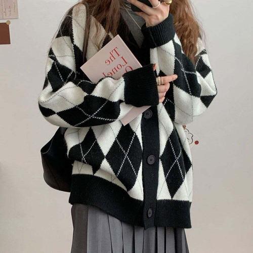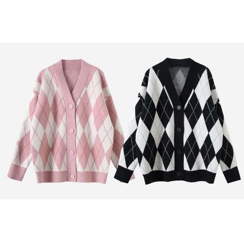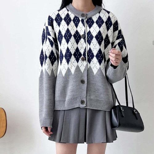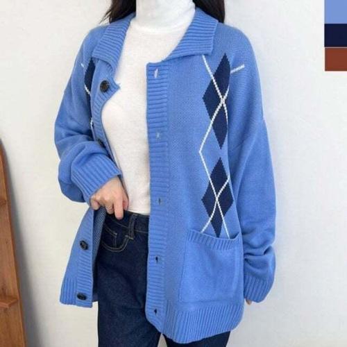 [셀럽하우스]클래식 ADMB2729 아가일 패턴 여자 루즈핏 니트 가디건