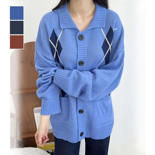 [셀럽하우스]가디건 KPXU5044 카디건 아가일 3컬러 패턴 LK528 루즈핏