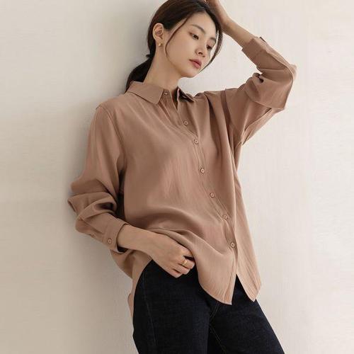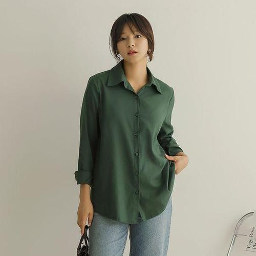 [XBG45251]여성 롱셔츠 2컬러 1P 베이직 뒷트임 단추 루즈