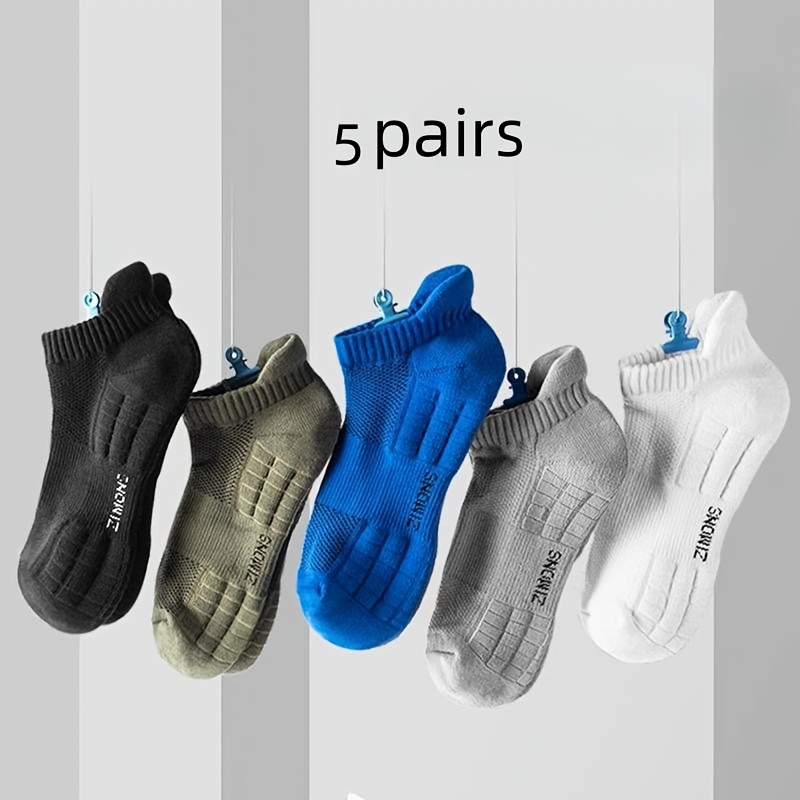 TEMU 봄, 여름, 가을용 남성용 단색 편안하고 통기성 좋은 운동용 발목 양말 5팩