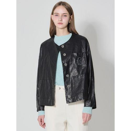 [르샵]노카라 포켓자수 레더자켓 (택가격: 199000원)