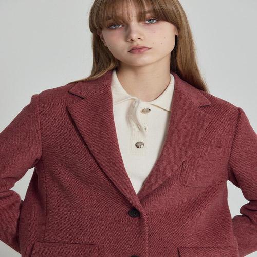 [르오트] 호주산 양모 100프로 크롭드 볼륨카라 양모자켓