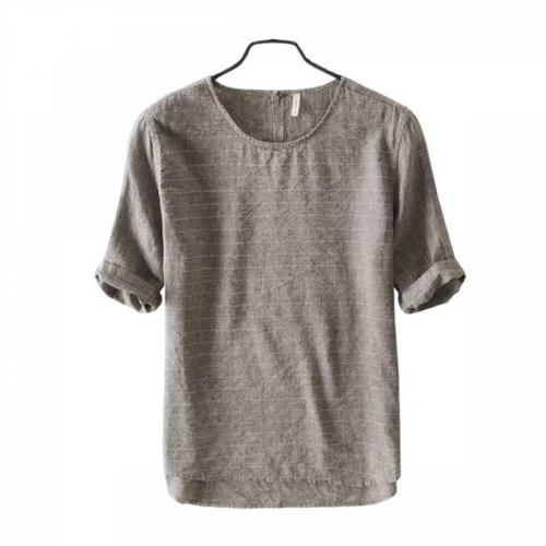 남성 코튼 린넨 셔츠 패션 소매 단색 반팔티 라운드 상의 통풍