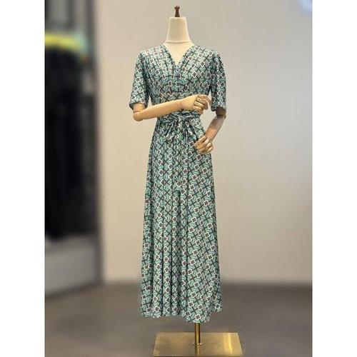 [모노무드]모노무드 은플레이스 브이넥 와이드 스타일룩 패션 옆트임 반팔 플라워원피