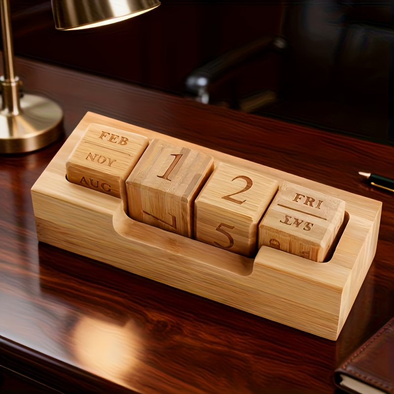 TEMU 맞춤형 나무 영구 달력: 영감을 주는 인용구, 회사 이름, 조각 로고로 맞춤 제작 가능. 가정 사무실 책상 장식용 아이템