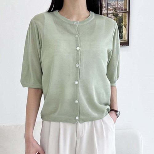 [셀럽하우스]썸머 TTGS1140 데일리룩 여성 린넨 퍼프 반팔 니트 가디건