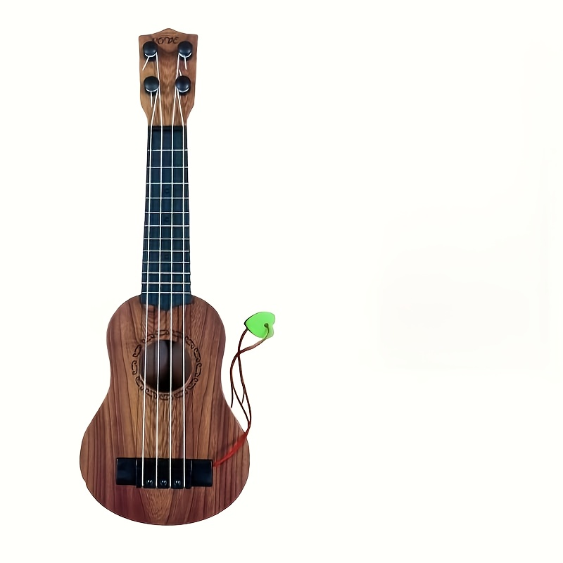 TEMU 피크 포함 기타, 우쿨렐레 (우쿨렐레 연습용), 나무 색상 플라스틱 기타 악기, 초보자에게 적합, 우쿨렐레 연습 악기, 선명한 사운드를 위한 정품 기타 스트링 4개 장착. 할로윈 및 크리스마스에 최고의 선물 선택