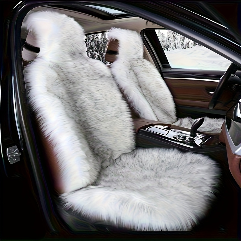 TEMU 겨울용 자동차 시트 쿠션 - 플러시 인조 양가죽 커버, 부드러운 폼 충전재, 보온 및 미끄럼 방지 운전석/조수석 쿠션, 휴대 및 압축 가능, 탈착식 커버 포함