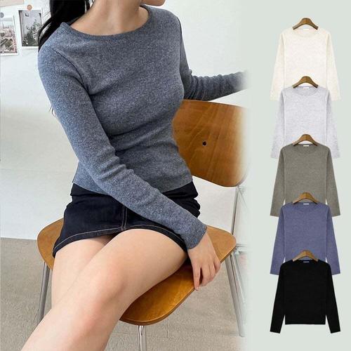 [셀럽하우스]여자 DLRY8076 데일리 편한 리베라 라운드 뱀부 니트 티셔츠