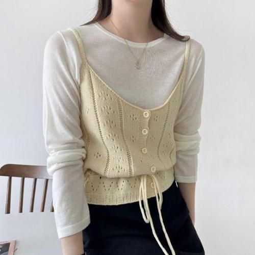 [퍼니걸스]라운드 끈 리본 레이어드 니트 베스트 조끼 8364 여성의류
