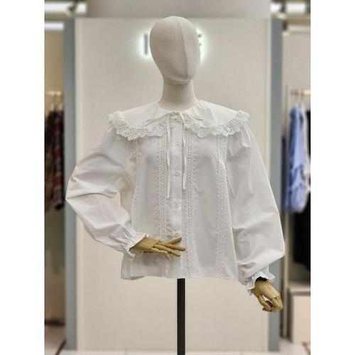 [신상오픈런]여자 리본 레이스 빅카라 루즈핏 박시 셔츠 블라우스