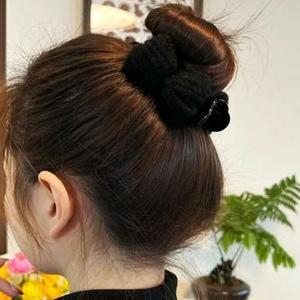 [콩심팥심]새틴 리본 헤어핀 블랙 깔끔 빅사이즈 반머리 모던
